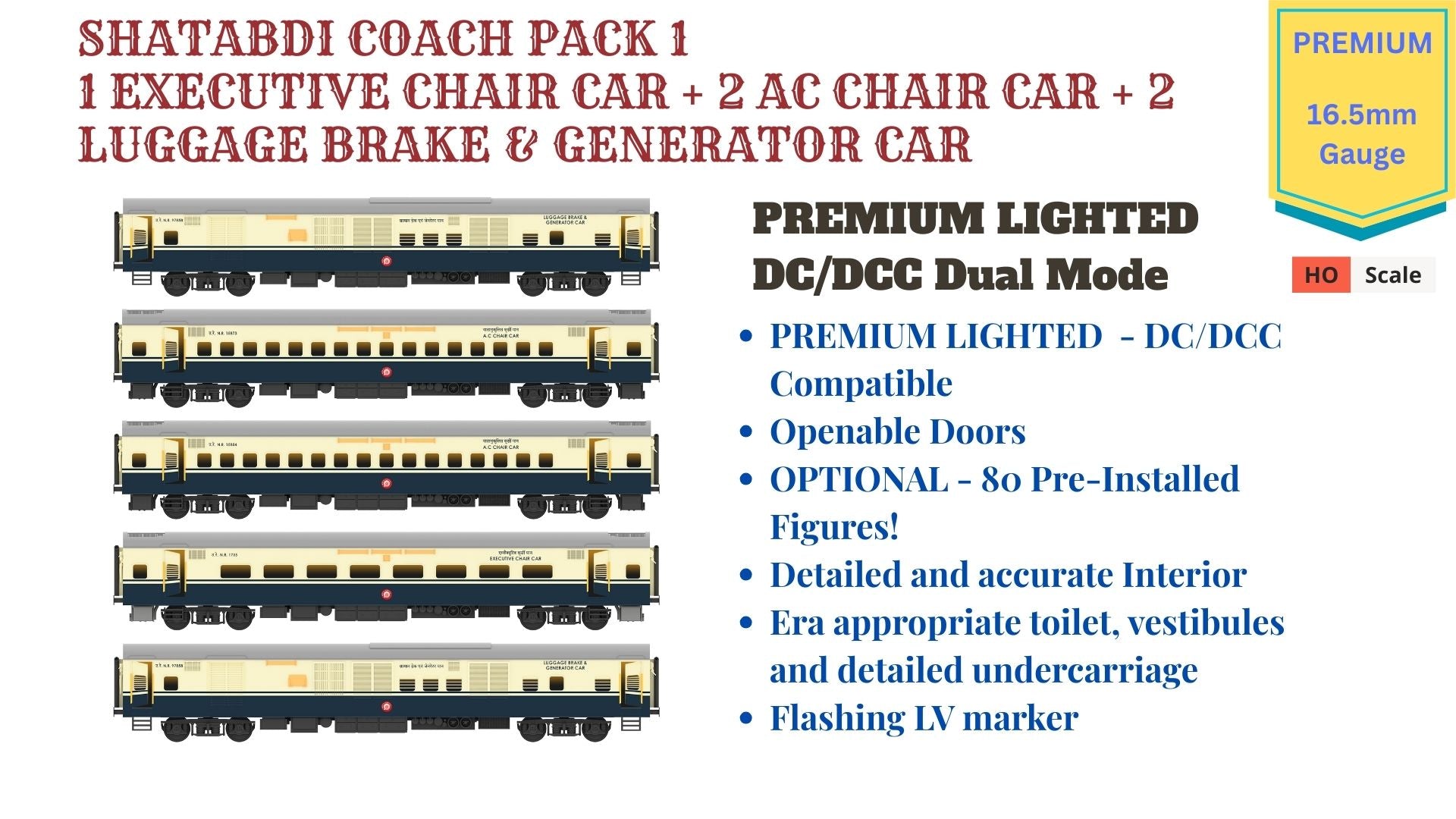 PRE-ORDER: SHATABDI COACH PACK - 1, HO Scale - PREMIUM, pack of 5