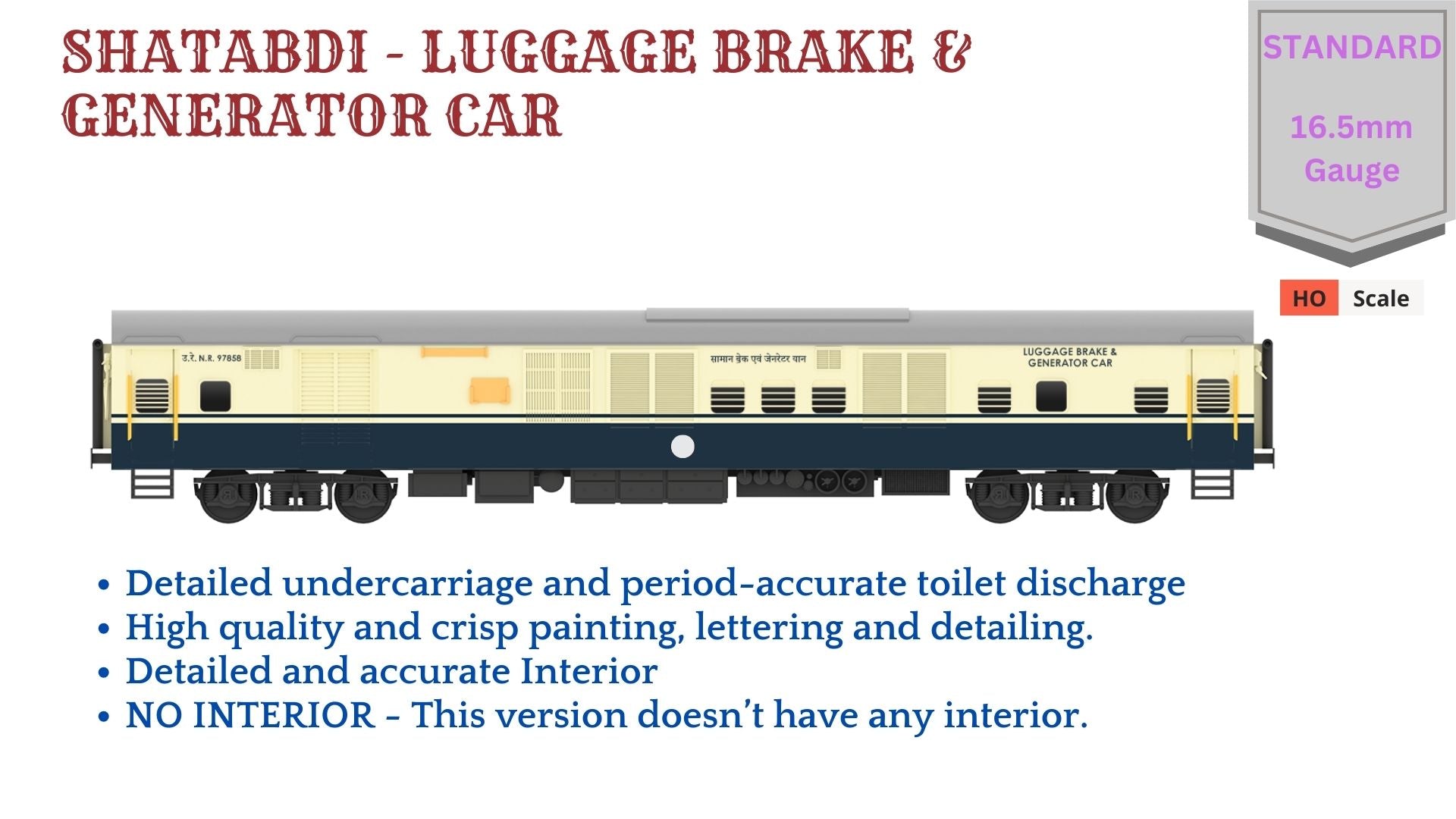 PRE-ORDER: SHATABDI - LUGGAGE BRAKE & GENERATOR CAR HO Scale - Standard Version